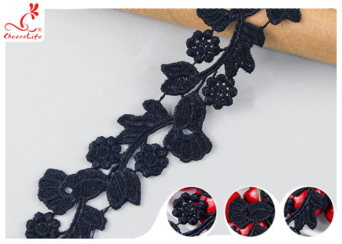 Высокая устойчивость окраски Черная цветочная вышивка кружевной отделки, растворимая в воде, показывает стойкий цвет, подходит для массового производства на фабрике одежды.