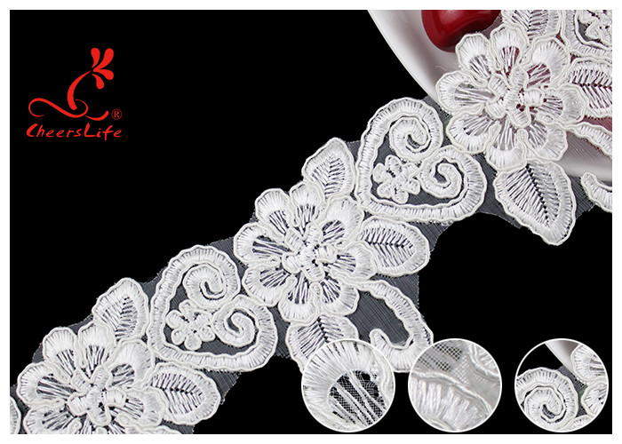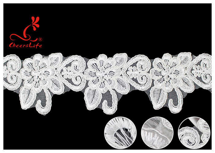 Вышивка цветочная французская шнуровая нейлоновая кружевная отделка для свадебных платьев на заказ