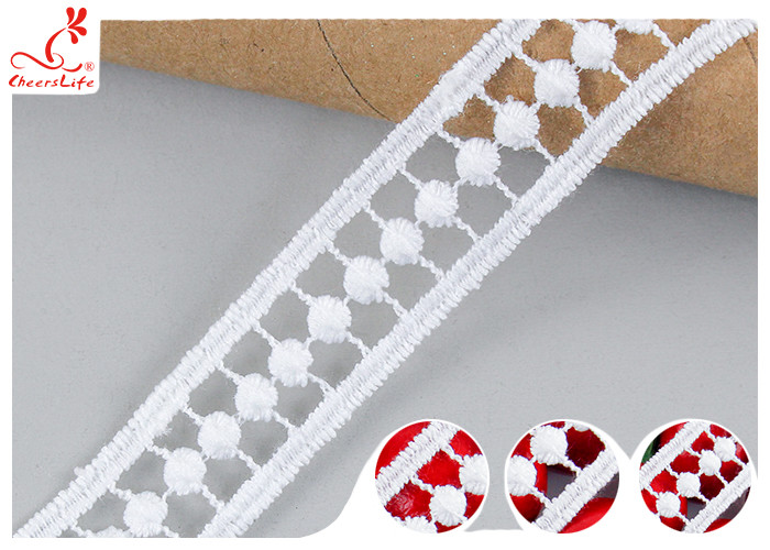 2 см Белый гиппур вышитый кружевная отделка с полимолоком шелковый пропуск OEKO TEX 100 показывает длительный цвет, подходит для одеждымассовое производство на заводе.